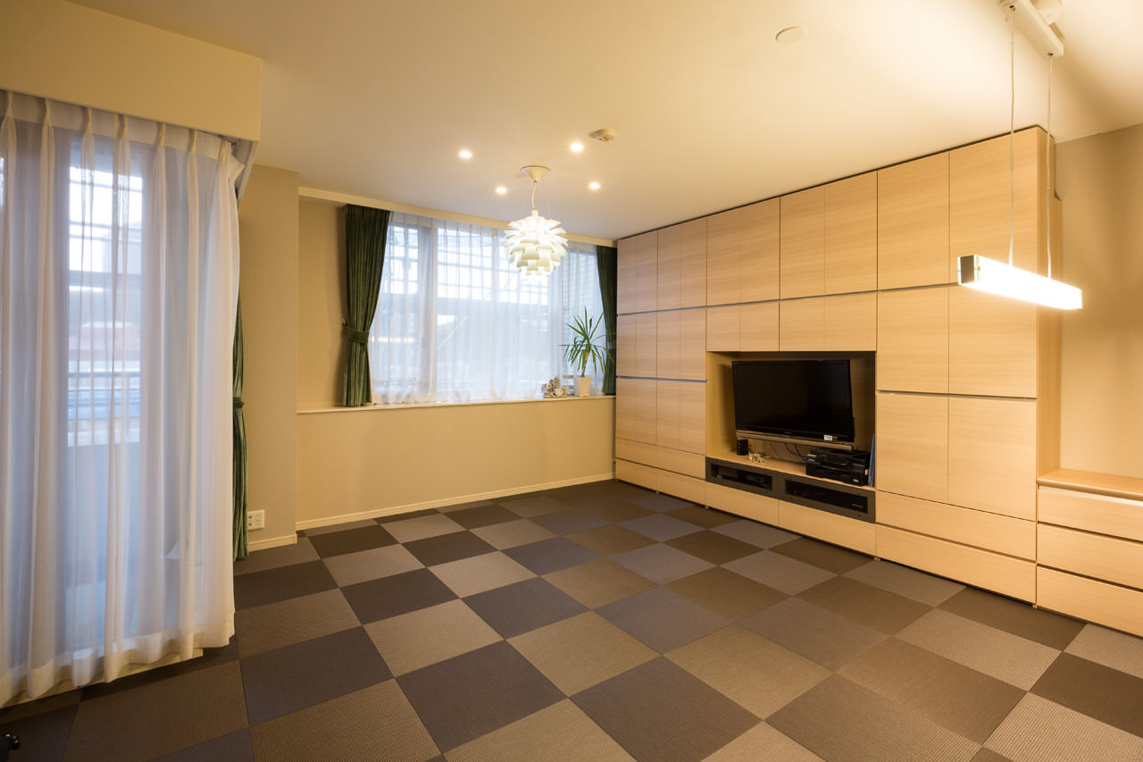 はじめてなのに懐かしい〜M&Iさま邸〜 既存のフローリングをそのままに、® ® を敷きつめました。 フローリングよりも、しっくり自然に、気持ちに体に寄り添ってくれる、 深いやさしさに包まれた空間になりました。